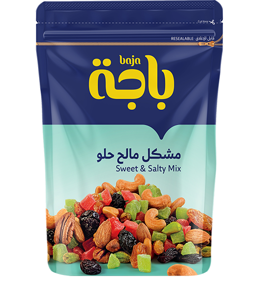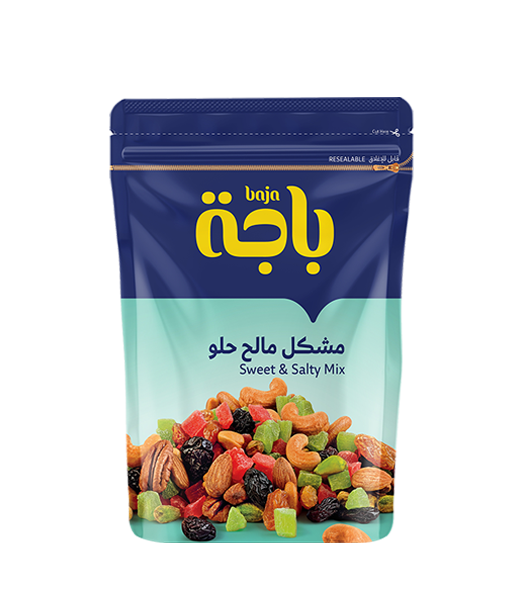خلطة من منتجات باجة عالية الجودة، وهو مزيج رائع من المكسرات المالحة والفواكه المجففة الحلوة
